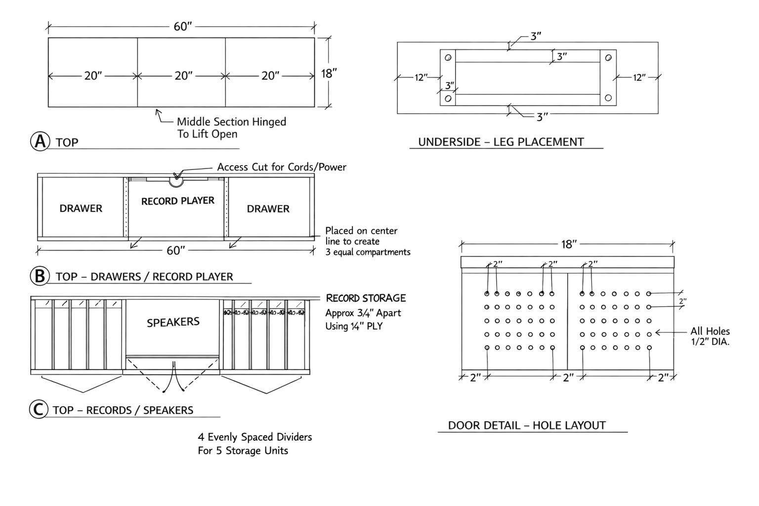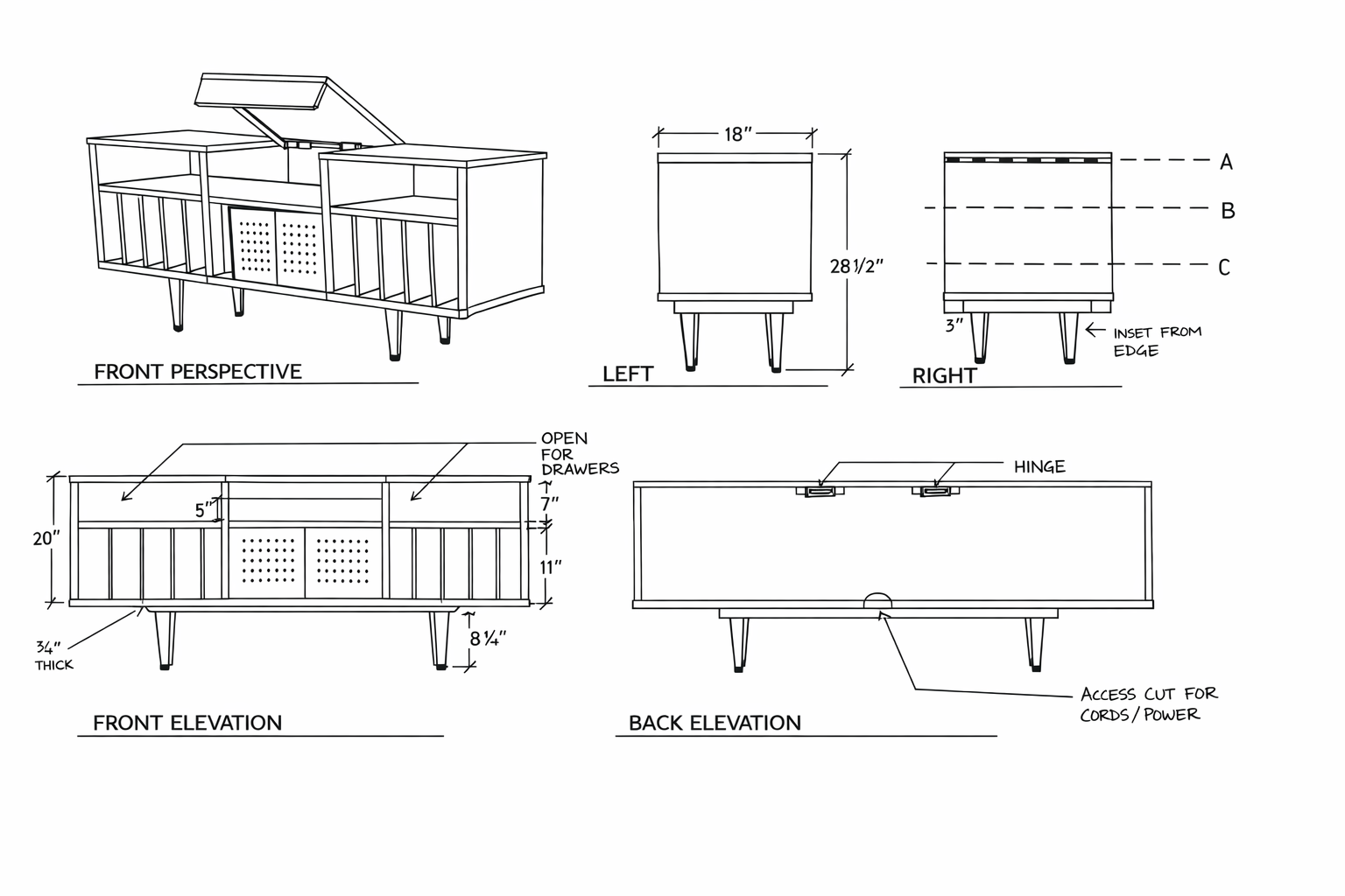 Record CabinetCustom pine construction - 2017 Completed Sketch - Sections and Details Sketch - Perspective and Elevations